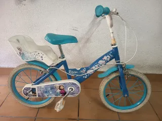 Bicicleta infantil con temática de Frozen, ideal para las pequeñas de la casa. Con un tamaño de 16 pulgadas, es perfecta para iniciarse en el mundo del ciclismo. - Diseño inspirado en la película Frozen. - Asiento trasero para muñecas o pequeños accesorios. - Ruedas de 16 pulgadas.