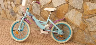 Bicicleta infantil de color azul con diseño de Frozen. - Ruedas de 16 pulgadas. - Cadena protegida. - Freno delantero y trasero. - NO TIENE PUÑOS - NEGOCIABLE