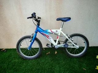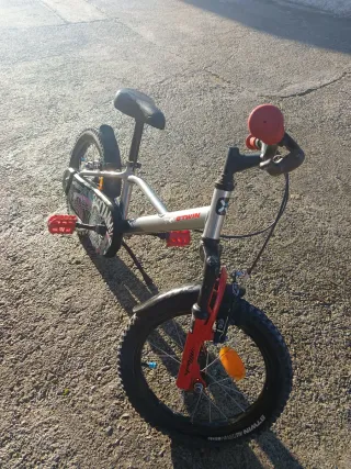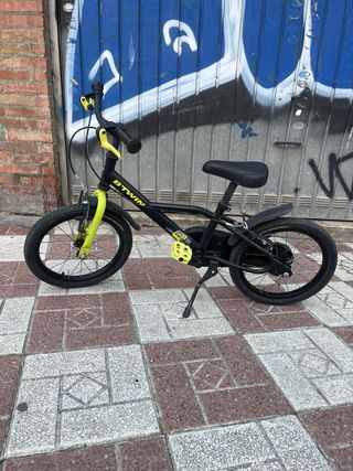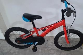 Bicicleta infantil Btwin de 16 pulgadas, ideal para los más pequeños. - Ruedas de 16 pulgadas. - Frenos rojos. - Reflectantes naranja en las llantas Poco uso, a los plásticos no les ha dado el sol