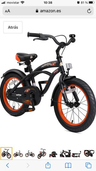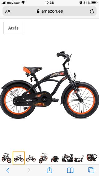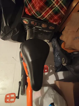 Bicicleta infantil de 16 pulgadas, color naranja y negro. El sillín está un poco rajado, por lo demás está muy bien. Envío foto del sillin - Ruedas de 16 pulgadas. - Diseño deportivo. - Cadena protegida.