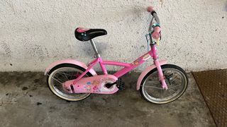Bici rosa de princesas Disney con ruedas de 16 pulgadas. Muy buen estado. Ruedas, frenos etc. perfecto. No incluye el candado.