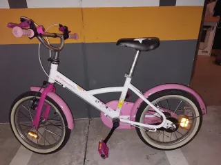 Bicicleta infantil en buen estado, ideal para niñas. Es una bici pequeña, perfecta para aprender a montar en bici. - Marca: Btwin - Color rosa y blanco - Ruedas de 16 pulgadas