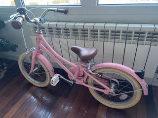 Bicicleta infantil de 16 pulgadas, ideal para las primeras aventuras. Funciona perfectamente y está en buen estado simplemente alguna marca por el uso. - Cuadro de color blanco con detalles en rosa. - Ruedas con llantas rosas. - Incluye timbre.