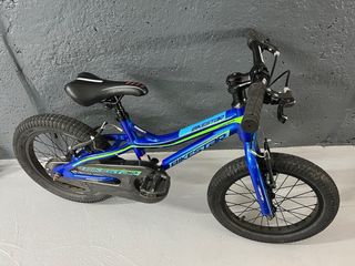 Bicicleta infantil de 16 pulgadas, ideal para niños de 5 a 7 años, para estaturas entre 105 y 135 cm. Ruedas hinchables. Frenos delanteros y trasero. Guardabarros y portabotellas. Protector de cadena. Venta en persona.