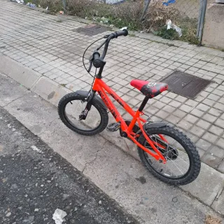 Bicicleta infantil de color rojo, ideal para los más pequeños. Cuenta con un diseño llamativo y ruedas de entrenamiento. - Cuadro de acero. - Ruedas de 16 pulgadas. - Frenos delanteros y traseros. - Sillín ajustable en altura. - Guardabarros delantero y trasero. Precio negociable