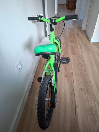 Bicicleta infantil de la marca Atractor, con ruedas de 16 pulgadas. - Color verde brillante. - Sillín ajustable. - Timbre incluido.