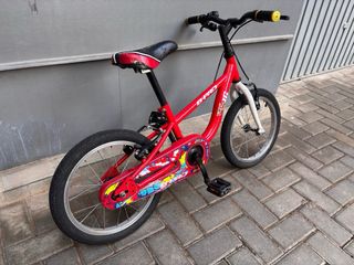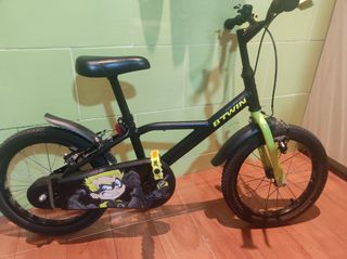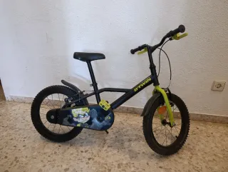 Bicicleta infantil de la marca Btwin, ideal para los más pequeños. Se encuentra en buen estado. - Diseño llamativo con personaje. - Ruedas de 16 pulgadas. - Frenos de mano. - Guardabarros delantero y trasero.