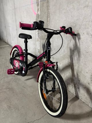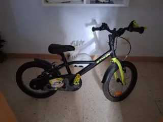 Vendo la bici por que nos mudamos al extranjero. Está nueva. La compré en Decathlon por 160€. Bicicleta infantil 16 pulgadas 4-6 años - Ruedas de 16 pulgadas. - Frenos delanteros y traseros. - Sillín ajustable en altura.