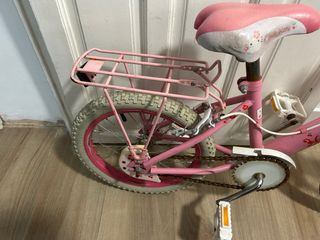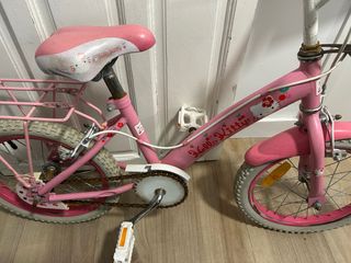 Bicicleta infantil de Hello Kitty con ruedas de 16 pulgadas. - Color rosa. - Diseño con Hello Kitty y flores. Muy usada