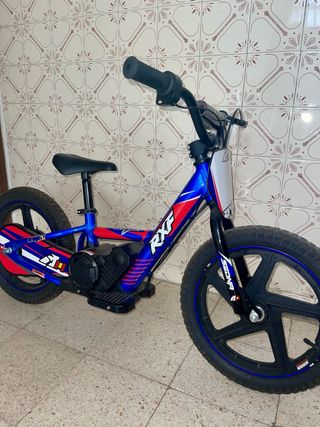 (Oportunidad a Reestrenar) Bicicleta eléctrica RXF de 16 pulgadas en color azul. ¡Como nueva! Perfecto para edades entre 4 y 7 años. - Diseño deportivo. - Ruedas de 16 pulgadas. - Color azul vibrante. - Estado inmejorable.