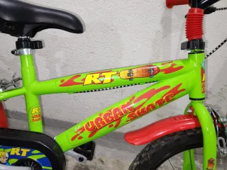 Bicicleta infantil de 16 pulgadas, ideal para los más pequeños. Su diseño llamativo en verde y rojo la hace muy atractiva. - Ruedas de 16 pulgadas. - Frenos de mano. - Guardabarros delantero y trasero. - Cadena protegida.
