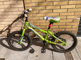 Bicicleta infantil de 16 pulgadas. - Rueda delantera con radios. - Neumático con dibujo. - Solo habría que arregral el cable del freno trasero, por lo demás está muy bien para paseos.