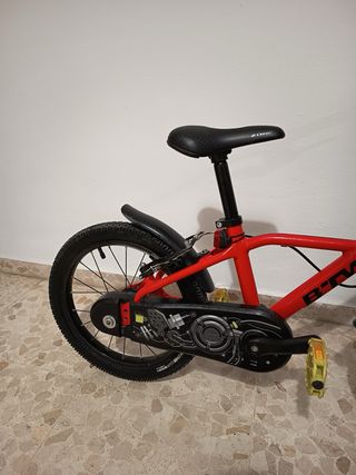 Bicicleta infantil de Decathlon, ideal para niños de 3 a 6 años. - Ruedas de 16 pulgadas. - Color rojo. - Incluye guardabarros.