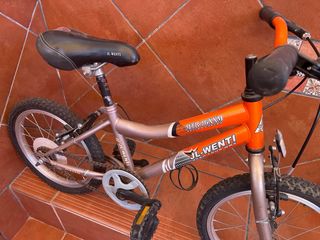 Bicicleta infantil de la marca Monty en color naranja. - Ruedas de 16 pulgadas. - Diseño deportivo. -lo unico que tiene mal es el sillin y los frenos