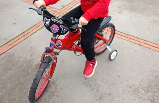 Bicicleta infantil de color rojo, ideal para los más pequeños. Esta pinchada doy también los ruedines - Ruedas de 16 pulgadas. - Frenos delanteros y traseros. - Diseño deportivo.