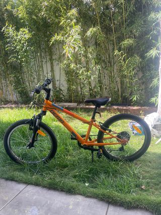 Bicicleta infantil de 20 pulgadas en color naranja. - Ruedas de 16 pulgadas. - Cambios Shimano - Piñones Shimano - Horquilla Sontour - Frenos delanteros y traseros. - Diseño llamativo en naranja.