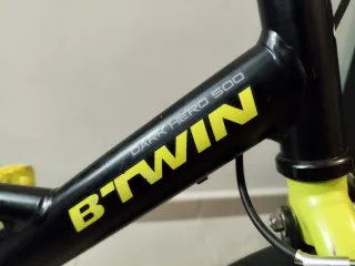 Bicicleta infantil de la marca Btwin, ideal para los más pequeños. - Ruedas de 16 pulgadas. - Diseño en color negro y amarillo. - Incluye guardabarros delantero y trasero. - Cadena protegida.