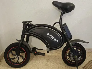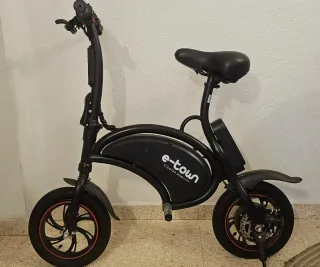 Se vende bicicleta eléctrica E Town en buen estado deal para ciudad. Diseño moderno, compacto u cómodo. Color negro con detalles rojos en las ruedas. Sillín cómodo y manillar regulable en altura,. Motor eléctrico de 250 W con velocidad máxima de 25 km/h. Batería de 36 V u 6.6 Ah con autonomía aproximada de 30 a 35 km y carga en 3 a 5 horas. Frenos de disco delantero y trasero, suspensiór delantera y trasera, luces LED, ruedas hinchables de 16 pulgadas. Plegable, resistente, soporta hasta 120 ka y pesa unos 22 kg. Ideal para moverse de forma práctica y sostenible. No se admite intercambio, ni pruebas.