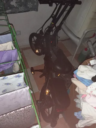 Bicicleta eléctrica plegable HITWAY en buen estado, con muy poco uso. - Diseño plegable para fácil transporte y almacenamiento. - Marco de color gris. - Ruedas de 16 pulgadas. - Incluye portaequipajes trasero.
