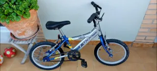Se vende bicicleta infantil en buen estado, ideal para los más pequeños. - Color azul y rojo. - Ruedas de 16 pulgadas.