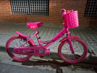 Bicicleta infantil de 16 pulgadas en color naranja. - Ruedas con tacos para mayor agarre. - Manillar con puños de goma. - Sillín ajustable. - Incluye timbre naranja.y caballete. - En buen estado, se vende por haberse quedado pequeña.