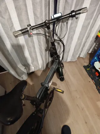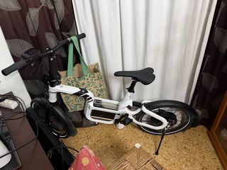 Bicicleta eléctrica Kymco Q Lite, ideal para desplazamientos urbanos. - Diseño plegable para fácil almacenamiento. - Color blanco con detalles en negro. - Ruedas de 16 pulgadas. - Suspensión trasera. No tiene mas de 25km hechos, está super nueva. Se la dieron a mi madre, hizo un trayecto y me dijo que no se hacia a ella, asi que no se ha vuelto a usar. Lleva su cargador y su funda con sus accesorios.
