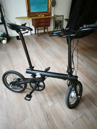 Bicicleta eléctrica plegable de la marca Xiaomi. Su diseño compacto la hace ideal para desplazamientos urbanos y para guardarla fácilmente. - Color negro. - Ruedas de 16 pulgadas. - Frenos de disco.
