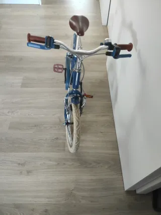 Bicicleta infantil BTWIN City 900 de color azul. - Ruedas de 16 pulgadas. - Sillín marrón. - Pedales con reflectores. Lleva pegatinas infantiles.