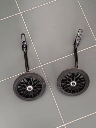 Ruedines de la marca Btwin para bicicletas infantiles. - Compatibles con bicicletas de 14 a 16 pulgadas. - Diseño con ruedas de apoyo. - Incluye soporte para fijación.