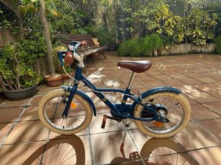 Bicicleta infantil Btwin City 900 en color azul. Ideal para los más pequeños. - Ruedas de 16 pulgadas. - Sillín y puños marrones. - Guardabarros delantero y trasero.
