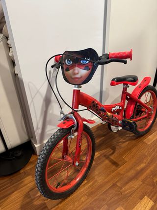 Bicicleta infantil de color rojo con diseño de Lady Bug. - Ruedas de 16 pulgadas. - Freno delantero. - Guardabarros delantero y trasero.