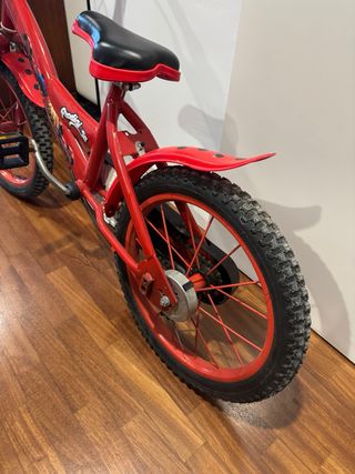 Bicicleta infantil con diseño de Rayo McQueen. - Color rojo. - Ruedas de 16 pulgadas. - Incluye guardabarros delantero y trasero.
