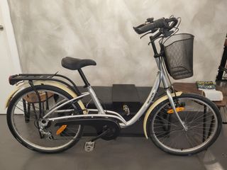 Bicicleta de paseo con ruedas de 26 pulgadas. Ideal para desplazamientos urbanos y paseos. - Color plateado. - Cesta delantera. - Portabultos trasero. - Guardabarros. - Timbre. - Candado Somos tienda, “VALENCYCLE”, puedes venir a ver y probar los productos sin compromiso, las bicis se venden con garantía y con puesta a punto realizada. Estamos en Calle Duque de Calabria 16, Russafa. Nuestro WhatsApp para cualquier consulta +34 722800098 TE ESPERAMOS!