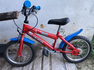Bicicleta infantil de la marca SPEED, ideal para los más pequeños. - Color naranja y azul. - Ruedas de 16 pulgadas. - Con suspensión delantera.Precio negociable
