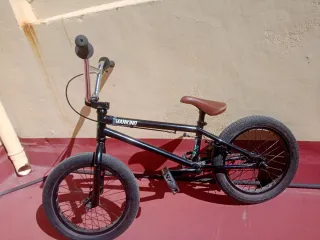Bicicleta BMX de la marca Mankind. -Modelo Planet - Llantas de 16 pulgadas - Cuadro negro. - Sillín marrón. - Ruedas negras.