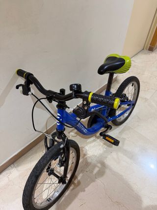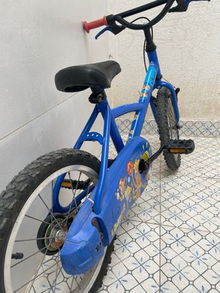 Bicicleta infantil de color azul, ideal para los más pequeños. - Ruedas de 16 pulgadas. - Diseño con dibujos animados. - Marca Btwin. - Ruedas nuevas. - Altura mínima del sillín 54cm. - Niñ@s 3 a 5 años.