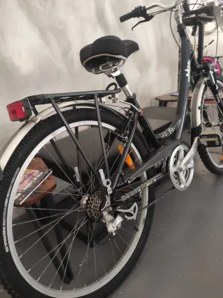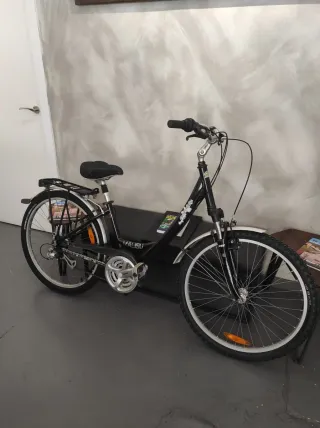 Bicicleta de paseo con ruedas de 26 pulgadas y cuadro de aluminio. - Cuadro de aluminio ligero. - Ruedas de 26 pulgadas. - Suspensión - 21 velocidades Shimano - Portabultos - Guardabarros - Tija con suspensión Somos tienda, “VALENCYCLE”, puedes venir a ver y probar los productos sin compromiso, las bicis se venden con garantía y con puesta a punto realizada. Estamos en Calle Duque de Calabria 16, Russafa. Nuestro WhatsApp para cualquier consulta +34 722800098 TE ESPERAMOS!
