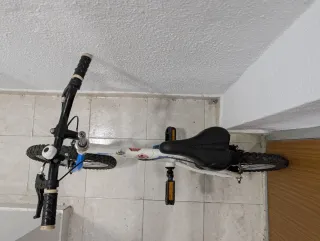Bicicleta infantil BTWIN en buen estado, ideal para niños. - Modelo: BTWIN 16 pulgadas. - Color blanco y azul. - Con ruedas de 16 pulgadas. - Incluye guardabarros y timbre