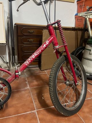 Bicicleta infantil California con un diseño llamativo en rojo y blanco.10€ - Ruedas de 16 pulgadas. Bicicleta infantil azul.8€ - Ruedas de 16 pulgadas. - No tiene sillín. Las dos juntas 15€