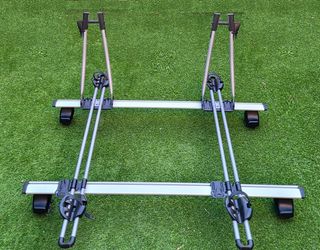 Soportes para bicicleta de techo Volvo (Lic. Thule FreeRide). Sin usar, 75€ las 2 unidades. Una sola 40€ ** Opción de envío por 10€ a cualquier punto de la península** Rack de aluminio, funcional y de fácil uso. Fijación rápida gracias a la abrazadera de cuadro estable y a las correas de apertura rápida. Bloqueo de bici en el portabicis y éste en las barras de techo (cerraduras incluidas y 2 llaves en cada uno y soportería) Carga máx: 17kg Medidas: 149x21x8.4 cm Peso: 3.5 kg Se ajusta a secciones del cuadro: 22-70 mm Anchura máx. del neumático: 3 pulgadas Para ruedas (diámetro): 16-29" Distancia máx entre ruedas: 1245mm