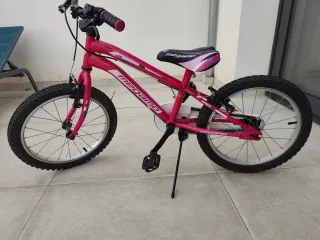 Bicicleta infantil de la marca Megamo, en color rosa con ruedas de 18 pulgadas y ruedines. - Diseño en color rosa. - Ruedines incluidos para mayor estabilidad. - Ideal para aprender. En perfectas condiciones ni signos de uso o desgaste. Una ganga.