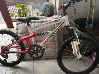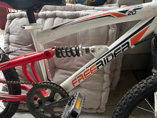Bicicleta de montaña Freerider con ruedas de 20 pulgadas. - Cuadro blanco y rojo. - Suspensión delantera y trasera. - Frenos de disco.