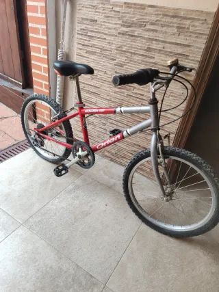 Bicicleta para niños de 20 pulgadas, ideal para edades entre 6 y 10 años. Se ha estado usando hasta el día de la publicación (22/05/25) y está en perfectas condiciones de uso, aunque muestra señales normales de uso. Tiene óxido que se puede apreciar en las fotos. -Las ruedas tienen bastante trote, pero aún se pueden utilizar si no tienes grandes pretensiones. -Tiene una maneta de freno partida, pero aún así, cumple su función. En resumen, puede servir para usarse tal como está o revisar frenos, cambiar cubiertas y ajustar cambios y tenerla como nueva