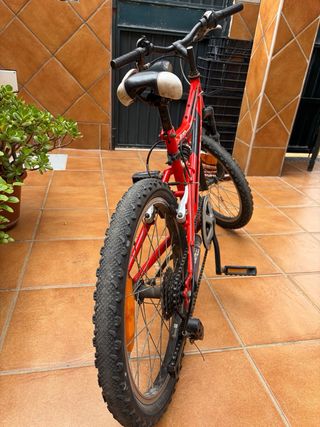 Bicicleta infantil de color rojo, ideal para niños de unos 7 años. - Ruedas de 20 pulgadas. - Diseño deportivo. - Frenos de mano.