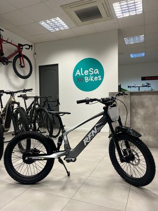 Bicicleta eléctrica RFN de 20 pulgadas, ideal para niños. - Diseño deportivo en color negro. - Ruedas anchas para mayor estabilidad. - Suspensión delantera y trasera. RFN RXF