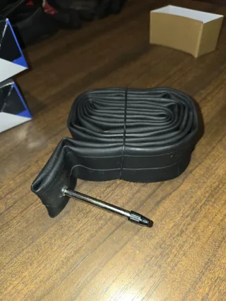 Cámara de aire para bicicleta de 26 pulgadas con válvula Schrader de 48mm. Diseñada para neumáticos de entre 1,7 y 2,2 de ancho. Esta nueva porque compramos un par y solo usamos una y ya hemos cambiado de bicicleta y esta ya no es de su talla. - Marca: Decathlon - Tamaño de rueda: 26 - Tipo de válvula: Schrader - Longitud de válvula: 48mm - Ancho de neumático compatible: 1,7 - 2,2 ///Tags de búsqueda: cámara válvula repuesto inflado presión neumático goma duradera parche herramientas bomba ciclismo rodado compatibilidad ligera resistente portátil antidespinchazos mantenimiento ruta montaña\\\