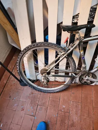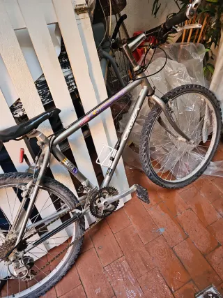 Bicicleta de montaña lista para usar. No hay que hacer nada a la bicicleta. - Ruedas de 26 pulgadas. - Neumático delantero nuevo. El neumático trasero en buen estado. - Llantas de aluminio. - Las dos palancas de los cambios de marchas marca Shimano. - Cambios de marchas marca Shimano. - 18 velocidades. - Cuernos. - Funda de sillín de gel.