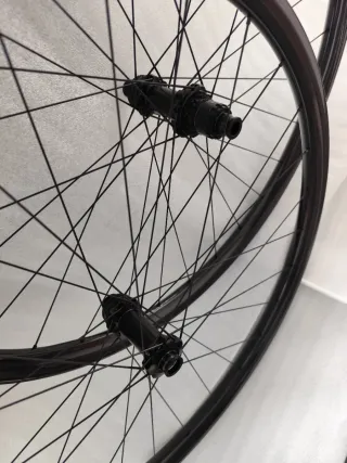 Juego de ruedas fibra carbono, 29 pulgadas mtb, 28 radios, 30mm interior, 20mm perfil, acabado ud brillo, aros asimétricos. Boost, 15x110mm delantero, 12x148mm trasero, para discos center lock, núcleo sram xd, o microspline a elegir, sistema ratchet 36 diendes, núcleo compatible dt swiss. Radios pillar psr tb 2015 triple conificado.Peso 1269g, con de. Radiadas a mano, más que probadas en competición xc-xcm, super fiables. Entrego con válvulas, cierres de disco centerlock, entrego tubelizadas. Vendo también por separado, trasera, o delantera. Envío por mí cuenta 570€, o entrega en mano 550€. (No negociable).