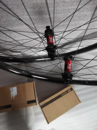 Llanta de bicicleta de montaña de 29 pulgadas solo con 130 kms extraídas de una Orbea alma. Juego de llantas delantera y trasera en perfecto estado. Regalo cassette 12 velocidades (sram) 11-50 Disco de freno delantero incluido, falta disco de freno trasero 2 cubiertas Maxxis Ikon 29x2.20 para llevar con cámara. Las llantas están preparadas para tubelizar ya q cuenta con el fondo de llanta Todo lo mencionado tienen tan solo 130 kms ya que las use mientras me llegaban otras, no hay q hacerlas nada más q montar y salir a rodar. El precio no es negociable, no contesto ofertas y la entrega es en mano.