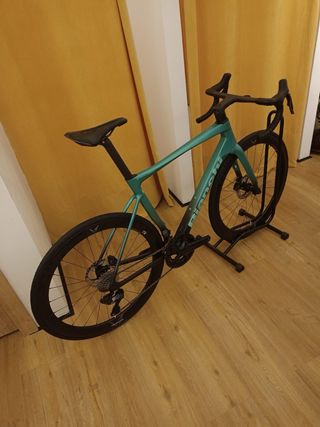 Bicicleta de carretera Bianchi Specialissima en talla M. Un modelo icónico de la marca italiana. - Cuadro de carbono. - Color verde menta. - Manillar visión metron 38cm de ancho con potencia integrada de 90 - Ruedas fulcrum aluminio (opcional ruedas de carbono +250€) - Tija de carbono FSA muy ligera - ATENCIÓN -> Grupo completo sram force (no en las fotos) - Sillín prólogo - Muy cuidada sin ninguna caída, con signos normales de uso. - Opción de venta solo cuadro+manillar+tija - Precio negociable - Acepto cambios por bici de gravel de valor similar.